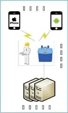圖中,前端設(shè)備(可以是移動(dòng)式也可以是固定式)完成對(duì)目標(biāo)手機(jī)的號(hào)碼、短信、App日志、App數(shù)據(jù)等信息的獲取,并將用戶信息通過(guò)互聯(lián)網(wǎng)發(fā)送至數(shù)據(jù)分析服務(wù)器;分析服務(wù)器接收和保存前端設(shè)備發(fā)送的目標(biāo)用戶信息,并對(duì)這些信息進(jìn)行關(guān)聯(lián)分析,竊取用戶敏感信息。