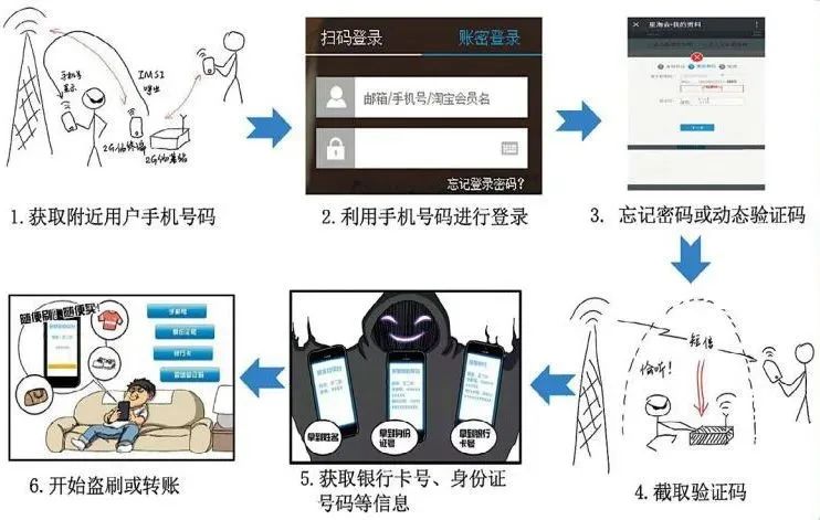 柳州警方立即成立專(zhuān)案組,將3名嫌疑人抓捕歸案。據(jù)交代,嫌疑人雷某和雷某斌負(fù)責(zé)利用嗅探設(shè)備竊取受害人手機(jī)信息,接收驗(yàn)證碼短信,分析機(jī)主身份證綁定的支付寶賬號(hào)和銀行卡號(hào),徐某則負(fù)責(zé)“加工”竊取來(lái)的信息,并在第三方支付平臺(tái)盜刷。從而在沒(méi)有接觸受害人手機(jī)、銀行卡且事先不知道其密碼的情況下,通過(guò)“隔空取物”的方式取走受害人銀行卡里的資金。